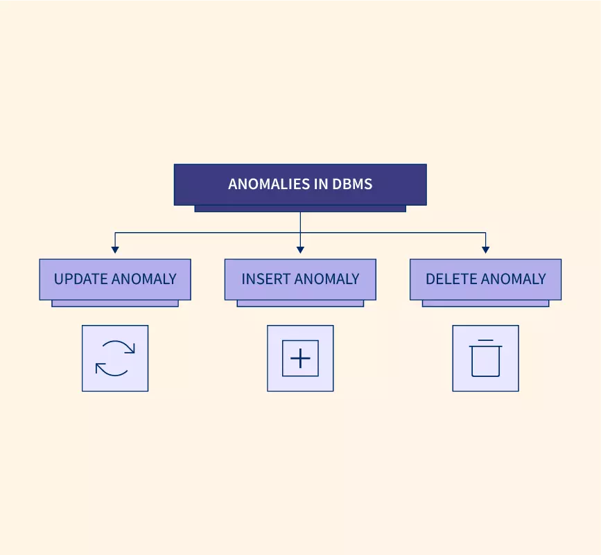 - Deletion anomaly: Deleting data about one entity accidentally removes data about another